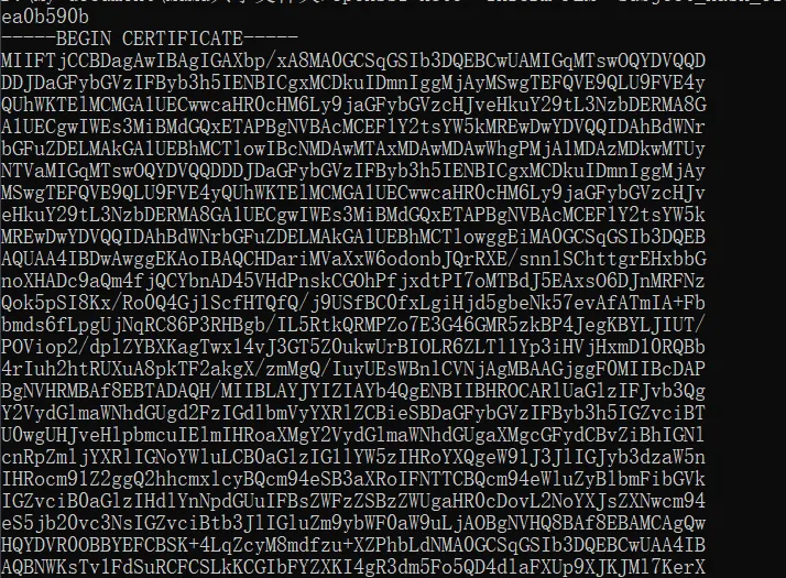 记住第一行长度为8的字符串,将downloadfile.crt的后缀名修改为pem,现在它应该叫downloadfile.pem