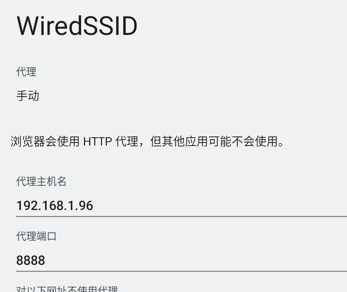 - 其中,代理主机名填写刚才的IP,代理端口填写刚才的端口(别写冒号),如下图